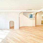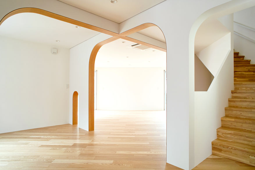隣地には園内の音が伝わり難く、保育室からの視線は住宅と住宅の間の対角を抜けて広がり、住宅の合間から保育室へ日が差し込みます。 内部はカーブする大小の開口を持つ壁で保育室を緩やかに区切ることで、保育士にとっては視認性が高く、子供たちにとっては居心地の良い場所を選べる多様性をもたせました。