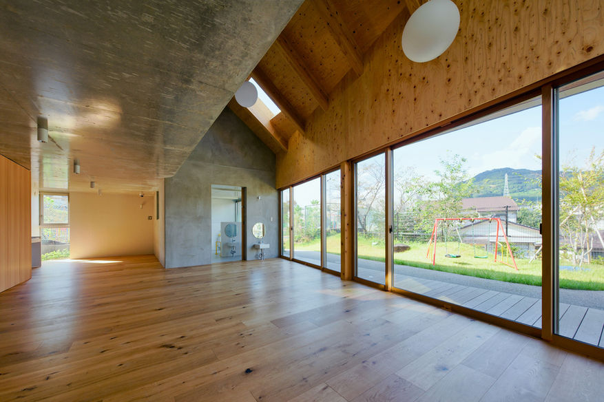 室内は時間変化に伴いトップライト、ハイサイドライトから光を反射・拡散しながら導かれ、順光となる園庭は古来から醸成されてきた北庭のように内部と親密な庭園となり、遠景は借景として季節の移ろいが鮮やかに感じられます。冬季は床暖房のみで過ごせる断熱性により自由度の増した保育室で、吹抜けは視覚的な広がりや明るさ、異なる構造体と気積による音の反響の違いが生じ、遊びやお昼寝の場所選びなどワンルームでありながら多様性と選択性を齎します。