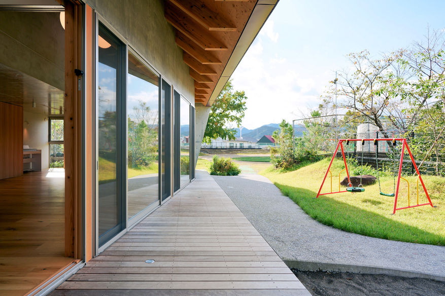 敢えて北向きに開いた保育室はカーテンの要らない連窓と軒下デッキテラス、園庭へとシームレスに繋がり、豊かな外部環境を内部に包含し、子ども達の情緒豊かな成長を促す場所となることを願っています。