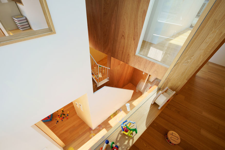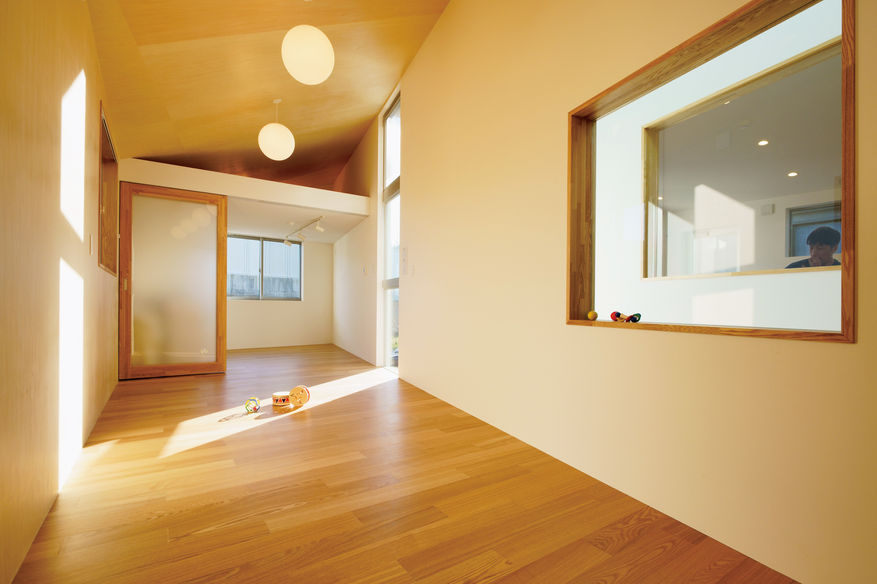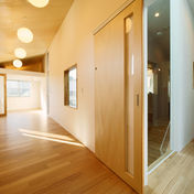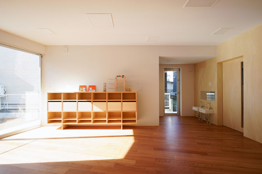 必要室として罹患した子どもが使用する部屋と占める面積割合が大きい。建築として開く方向は隣地の住宅が近くそちらは避けたいため限定的である。そこで屋外と変わらない照度環境となる抜けの良いエントランスホールによる採光と視線上の開きと、隣地住宅を避けた位置での換気上の開きを分ける計画とした。 表裏の建物が混在する南北の通りからアクセスし各室へはホールを介して東西へ。屋外照度と連動しファサード化するホールへ開いた各部屋の視線と光は立体的に交錯し、異なる場の動きや気配を縦横に伝播する。